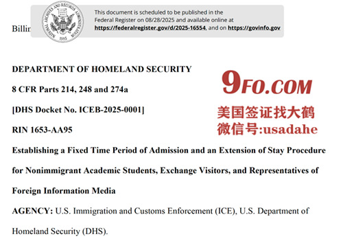 2025年8月28日,美国国土安全部(DHS)在《联邦公报》上发布拟议新规《关于取消国际学生(F)、交流访问学者(J)及外国新闻媒体代表(I)等类别“身份有效期(D/S)”政策并设定固定停留期限的拟议规则》。
