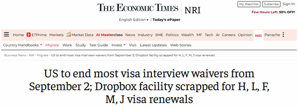 “Dropbox”通道基本被废止:如 H、L、F、M、J 签证续签模式将被强制回归面试流程。