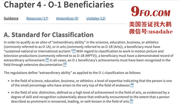 在O-1签证申请过程中,受益人需要证明自己在所属领域是极少数的杰出人才。除了可以直接证明的硬性材料之外(如:获奖记录、媒体报道、评审经历等等),推荐信往往对这些证明材料起到解释说明的作用。下图是USCIS官网截图