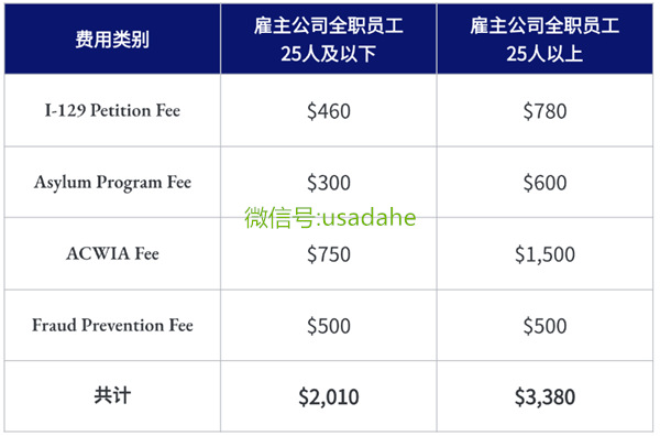 美国签证找大鹤为小伙伴们和雇主整理了成本清单,中签后涉及到的官费总共以下几项,如果需要在15个工作日内得知结果做加急,则需要在此基础上缴纳额外的$2,805美金给移民局。