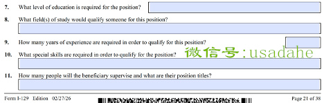 不过需要澄清:以上几个问题在表格没有更新前,都是应该在H-1B申请中详细说明的重点内容。(管理多少下属、下属各自是什么职位的信息,一般自雇H-1B的商业计划书会体现,非自雇案件要看是否属于管理岗位)这次表格更新不过是把原本在申请信里的内容再次在表格里填写清楚。所以,这几个问题的更新并非对H-1B申请提出了新要求。